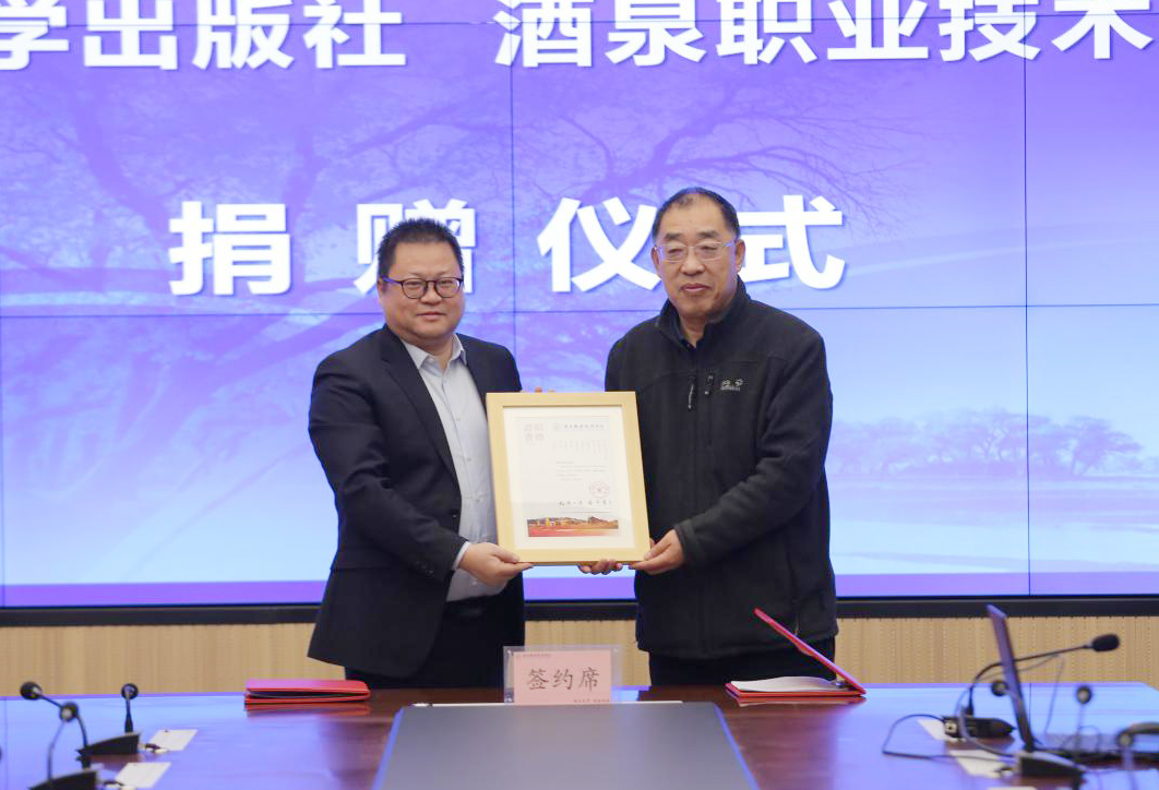 许军代表学校接受了重庆大学出版社捐赠的图书。