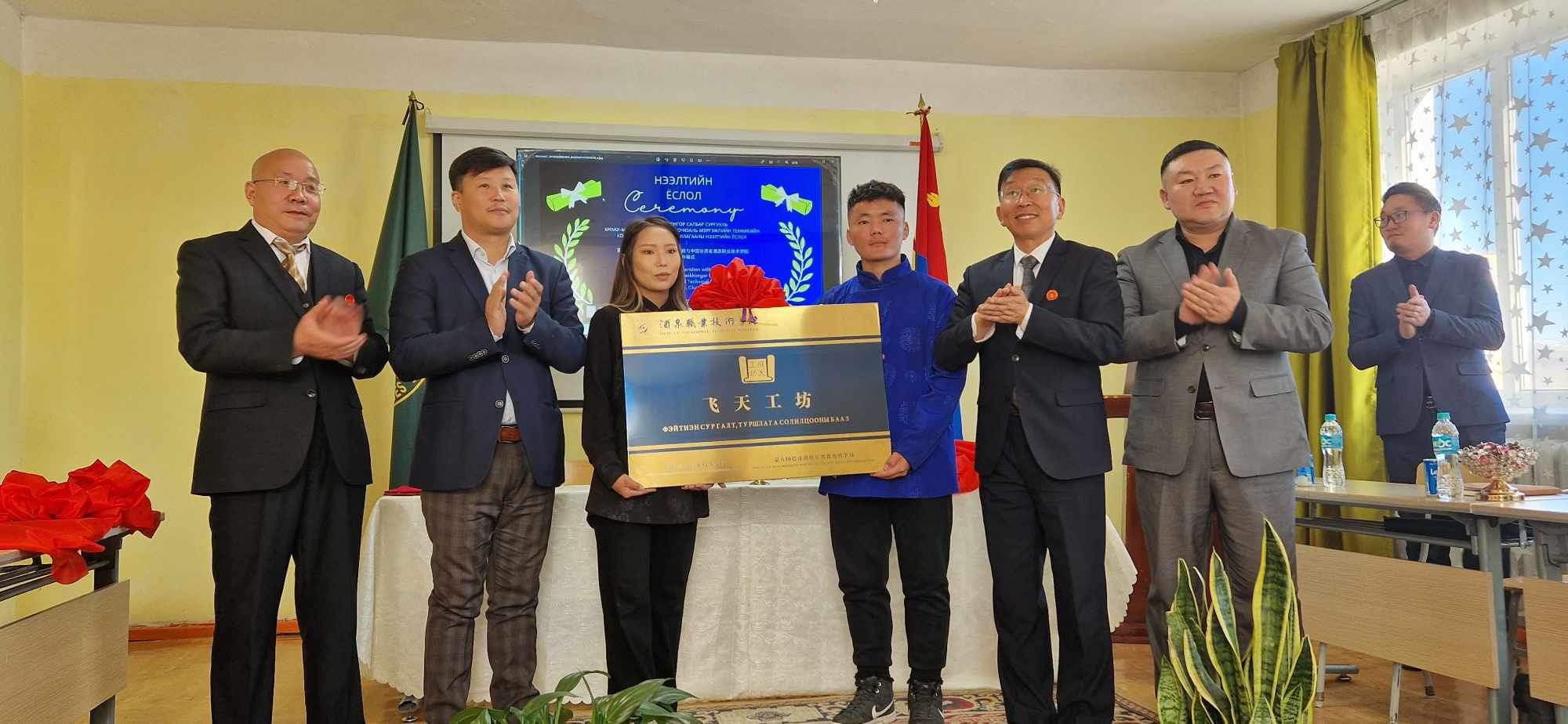 之后,中蒙双方举行了飞天工坊建设签约和揭牌仪式,易志军和嘎-恩赫巴雅尔市长签署了《中蒙友谊飞天工坊建设备忘录》,共同为中蒙双方共建的“飞天工坊”“飞天工坊现代农业技术实训区”“飞天工坊新能源技术实训区”进行了揭牌。仪式后,中蒙双方分别发言表达了对彼此的信任和合作的期待,双方表示将共同推进“中蒙友谊”飞天工坊项目和人才培养项目建设。通过这两个项目建设三个平台:一是“校际合作平台”,开展合作办学,招收留学生或由中方教师赴蒙古国开展教学;二是“职教研究平台”,开展职业教育研究,承办中蒙职教论坛;三是“资源开发平台”,开发课程标准、双语教材等集教学、实训、培训、大赛及成果展示于一体的国际化教学资源;依托中蒙国际交流合作平台,双方将进一步加强联系与沟通,共建职教联盟,积极寻找新合作项目,创新合作方式,形成合作机制,互利共赢,不断推动双方职业教育发展走向更高阶段。飞天工坊的揭牌标志着我校首个飞天工坊正式启动运行。巴彦洪格尔分校的学生代表在仪式上为出访团展演了民族器乐和舞蹈。仪式结束后,双方在蒙古国农业大学巴彦洪格尔分校、飞天工坊现代农业技术实训区和飞天工坊新能源技术实训区进行了现场办公,对如何实施飞天工坊项目进行了深入讨论和规划。