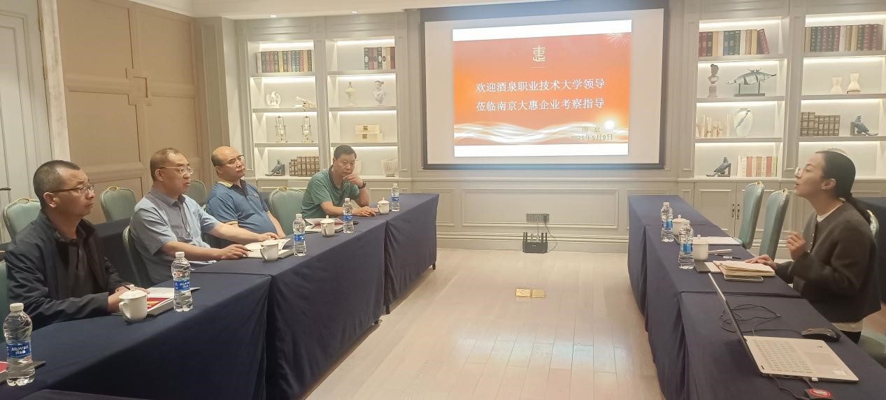 南京大惠企业发展有限公司,许军一行与企业代表进行了座谈交流,深入了解了企业现状、人才需求与发展趋势并实地考察了旗下酒店。许军表示南京大惠企业发展有限公司经营范围广泛,我校旅游类专业与企业人才需求与发展趋势匹配。校企双方要加强合作、合作共赢,不仅在学生实习就业等方面开展合作,还要在人才培养、产学合作方面更深入合作。同时要校企联动、优势互补,在“五金”建设、企业员工培养等方面开展深入合作。