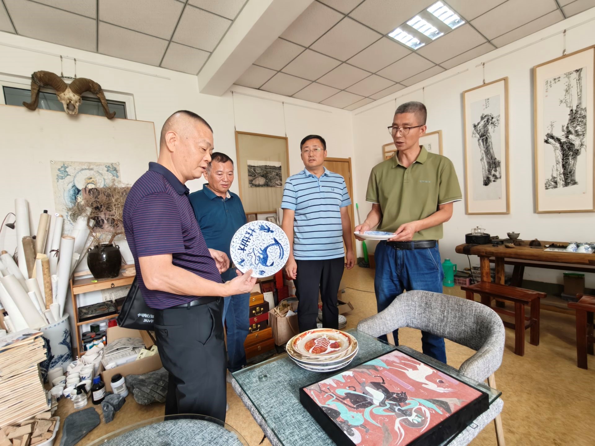 调研期间,胡红沐一行还对学校非遗教育资源、校园基础设施及会议承办条件进行了实地考察。作为中陶会非遗专委会副理事长单位,酒泉职业技术大学近年来在非遗技艺传承、产教融合及文化育人方面成果显著。胡红沐一行还重点参观了学校敦煌彩塑技艺传习所、戈壁石艺画工坊、夜光杯雕工坊等非遗技艺实训基地,对学校将非遗技艺传承与职业教育深度融合的创新实践给予高度评价。