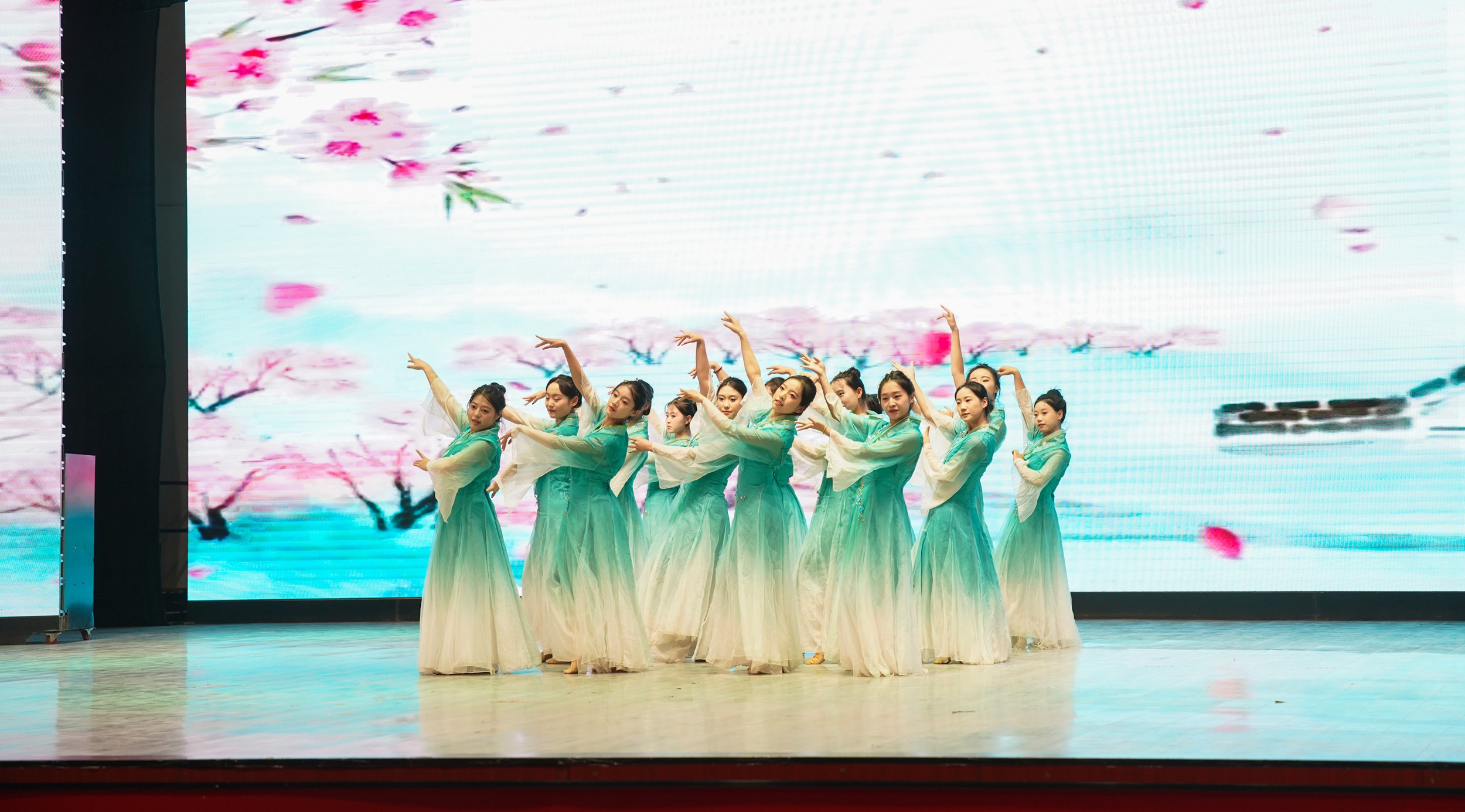 第二篇章“胡杨·激扬青春展‘新’颜”中,体育与健康学院的创意舞《破茧青春》象征新生的成长与蜕变,化工学院、经济管理学院和医学院的表演各具特色,传达了青春的热情与活力。旅游与烹饪学院则以《匠韵食光》将敦煌文化与现代礼仪巧妙结合,赢得阵阵掌声。
