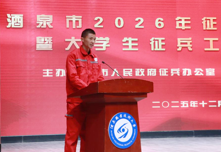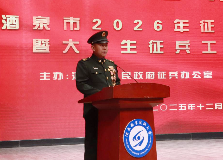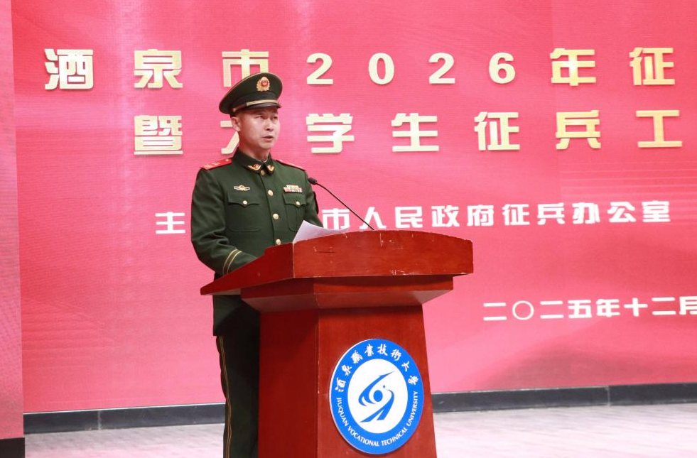 要闻快递 > 正文2025年12月19日下午,酒泉市2026年征兵宣传进校园暨大学生征兵工作启动仪式在酒泉职业技术大学胡杨活动中心举行。本次活动由酒泉市人民政府征兵办公室主办,酒泉职业技术大学、肃州区人民政府征兵办公室共同承办,旨在深入贯彻习近平强军思想,进一步激发广大青年学子投身国防、报效祖国的热情,为新时代国防和军队现代化建设输送高素质兵员。