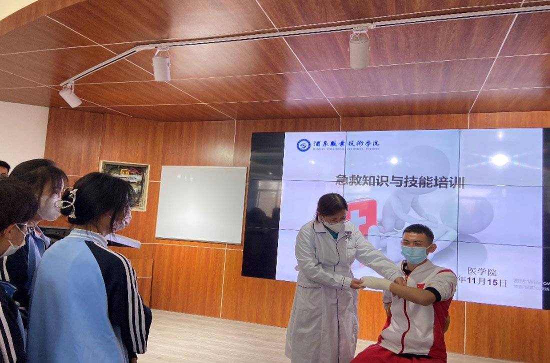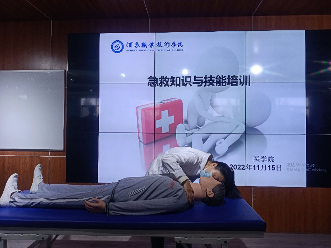 为提高全校师生健康素养,增强师生现场处理意外伤害的知识和意识,提高自救和互救的能力,普及急救知识和技能。根据学校《关于开展“‘救’在身边”系列活动的通知》安排,11月15日,医学院在学校胡杨大讲堂为土木工程学院和体育与健康学院部分学生开展了‘救’在身边——急救知识与技能培训。