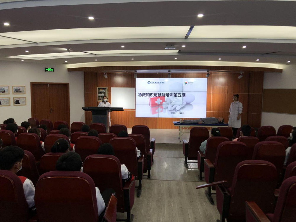 为更进一步提升和普及同学们对于急救的基本知识和技能,更好的护航生命。11月22日,医学院在学校胡杨大讲堂为旅游与烹饪学院和医学院近80名急救志愿者开展了‘救’在身边——急救知识与技能培训。