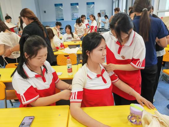 在止血与包扎部分,老师介绍了常见的止血方法,如指压止血、加压包扎止血等,以及绷带、三角巾的包扎技巧,包括头部、手臂等部位的包扎方式。学生在老师的指导下,使用模拟伤口和包扎材料进行实际操作,提升了动手能力。