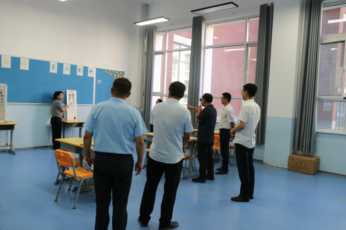 施荣同志深入体检区域,逐一查看了内科、外科、视力、血压、静脉采血、检验等各功能体检区,仔细询问了场地布置、设备调试、流程安排、人员配备及应急处理预案等关键环节的落实情况。医学院院长范玉敏就整体筹备工作作了系统汇报。